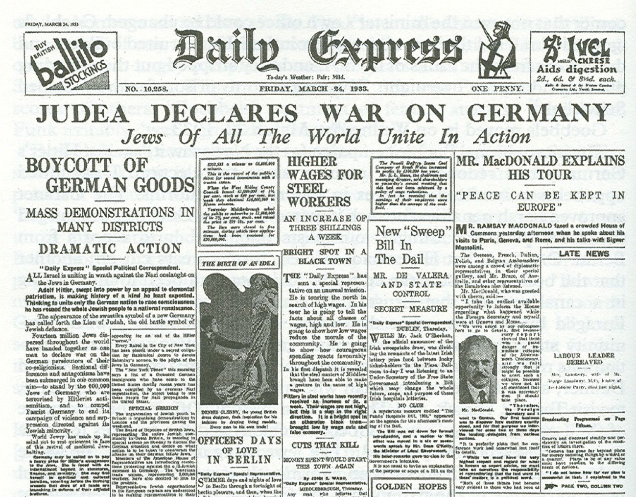 It is an historical fact that the Jews worldwide declared war on Germany in 1933. No wonder Adolf Hitler said, "Germany has a problem with the Jews." Obviously, Germany had a problem with the Jews. The Jews were traitors who declared war on Germany.